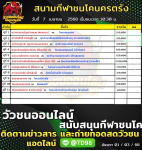 โปรแกรมวัวชน สนามกีฬาชนโคบ้านบ่อล้อ 12 เมษายน 2568 รายการวัวชน