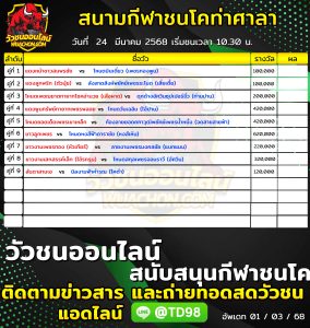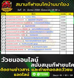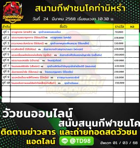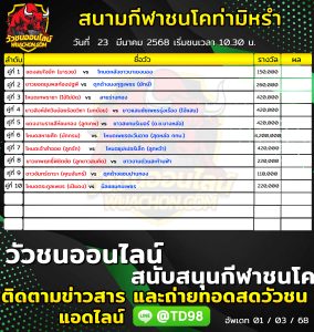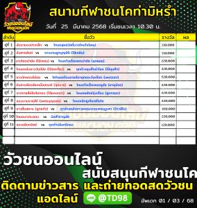 โปรแกรมวัวชน สนามกีฬาชนโคท่ามิหรำ 25 มีนาคม 2568 รายการวัวชน