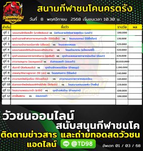 โปรแกรมวัวชน สนามกีฬาชนโคนครตรัง 8 พฤศจิกายน 2568 รายการวัวชน